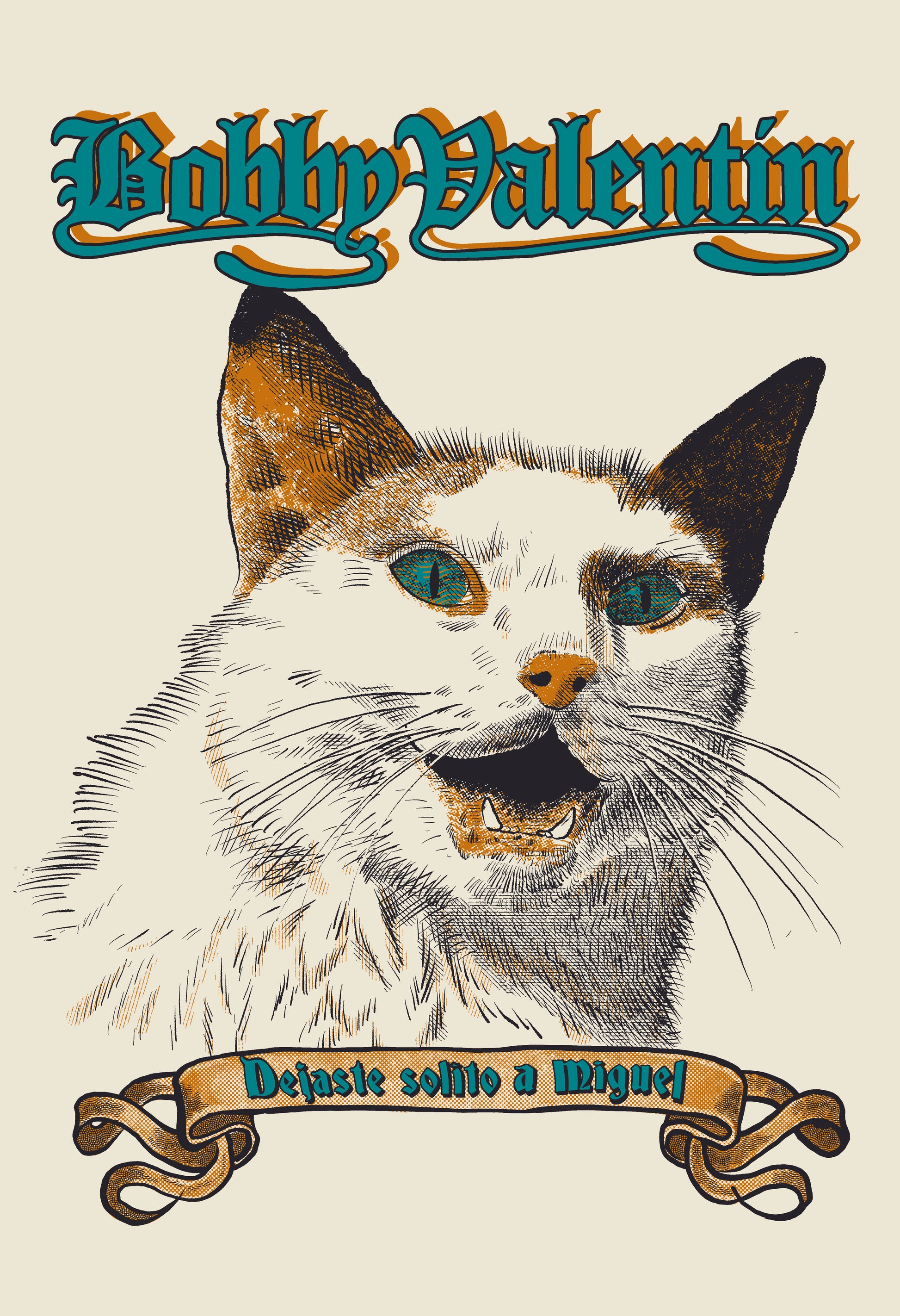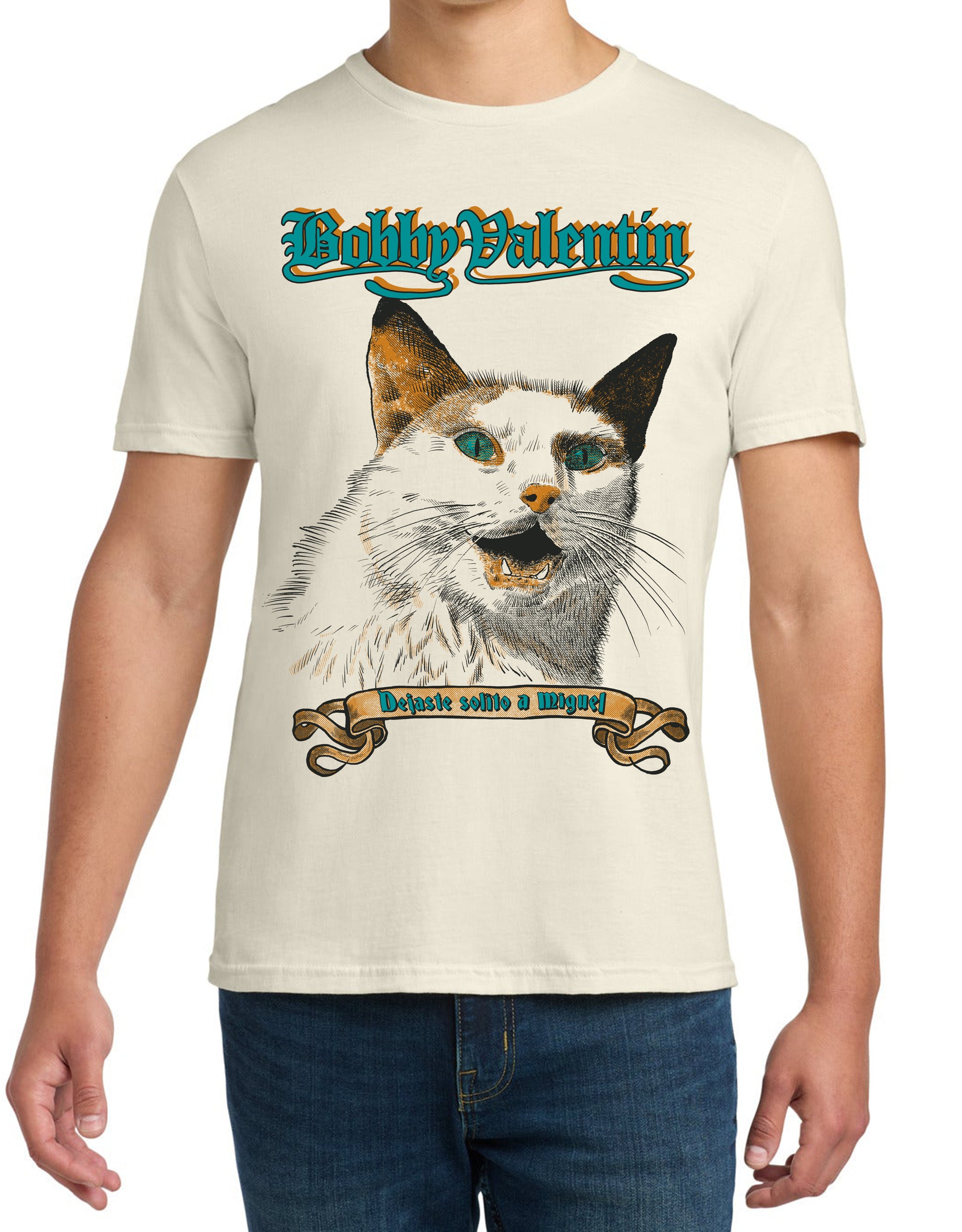 Tribute shirt to the song "El Gato" by Bobby Valentín, printed in 3-color screen print on “Natural” color unisex shirt Gildan Softstyle 100% cotton "ringspun".
